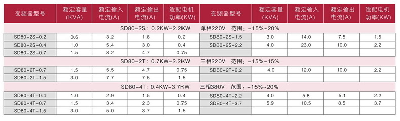 SD80系列變頻器是在EH600S的基礎(chǔ)上分別采用了三菱IPM以及英飛凌最新IGBT模塊設(shè)計的一款新產(chǎn)品,涵蓋所有EH600S系列的軟件功能,在硬件、結(jié)構(gòu)方面進行優(yōu)化設(shè)計,使整機可靠性更高,功率等級擴展到三相380V 0.7- 3.7kw, 單相/三相 220V 0.4-2.2Kw,產(chǎn)品廣泛應(yīng)用于木工雕刻、食品、傳輸、等領(lǐng)域。