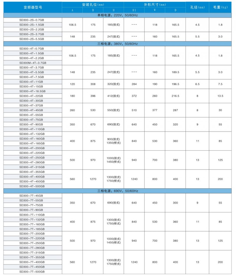 SD300系列高性能矢量變頻器是我司開(kāi)發(fā)的新一代高性能電流矢量變頻器,主要用于控制和調(diào)節(jié)三相交流感應(yīng)電機(jī)的速度和轉(zhuǎn)矩。SD300系列產(chǎn)品采用與目前國(guó)際最領(lǐng)先技術(shù)完全同步的無(wú)速度傳感器矢量和有速度傳感器矢量控制技術(shù),具有低速高轉(zhuǎn)矩輸出和良好的動(dòng)態(tài)特性、超強(qiáng)的過(guò)載能力,帶多種通訊總線功能,支持多種PG 卡等,組合功能豐富強(qiáng)大,性能穩(wěn)定。