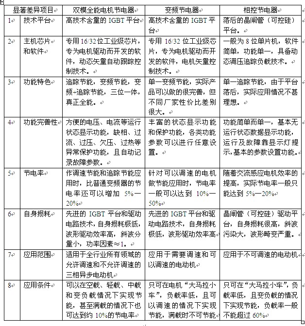 因此,F(xiàn)DS-DP雙模全能電機(jī)節(jié)電器幾乎解決了所有電機(jī)節(jié)能應(yīng)用的問題(只要本身存在節(jié)能的空間),是真正的一機(jī)全能電機(jī)節(jié)電器,更是傳統(tǒng)節(jié)電器、軟啟動(dòng)器、變頻器、節(jié)能控制器的理想換代產(chǎn)品。