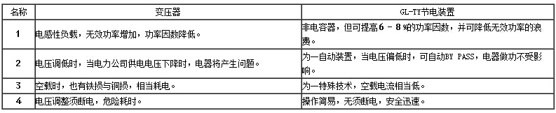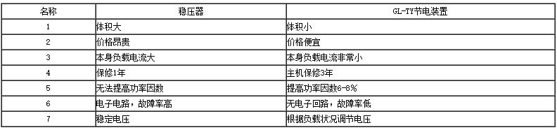 答:穩(wěn)壓器與GL-TY節(jié)電裝置差異比較表
