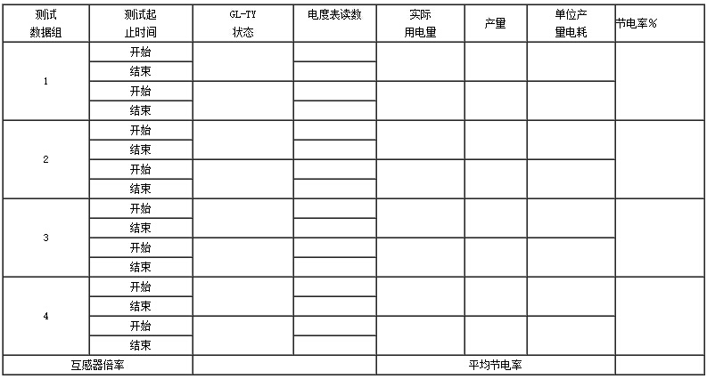 未安裝節(jié)電器前,先對系統(tǒng)的生產(chǎn)和電耗情況進行詳細統(tǒng)計,包括每天設(shè)備運行時間、產(chǎn)品種類、產(chǎn)量、系統(tǒng)總耗量,連續(xù)測試1-2周。
