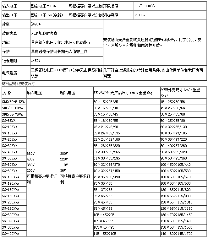 我公司多年來(lái)采用優(yōu)質(zhì)材料和先進(jìn)的工藝技術(shù)專業(yè)生產(chǎn) 160VA--600KVA 之間,SG系列三相干式隔離變壓器,產(chǎn)品參照國(guó)外同類產(chǎn)品最新研制開(kāi)發(fā)進(jìn)口設(shè)備用變壓器,SBK 系列三相干式變壓器廣泛適用于交流 50/60HZ ,輸入、輸出電壓不超過(guò)500V 的各種供電場(chǎng)合。產(chǎn)品的各種輸入、輸出,電壓高低,聯(lián)接組別,調(diào)節(jié)抽頭位置,繞組容量分配,次級(jí)繞組配備,是否要求帶外殼等,均根據(jù)用戶的要求進(jìn)行精心的設(shè)計(jì)與制造。