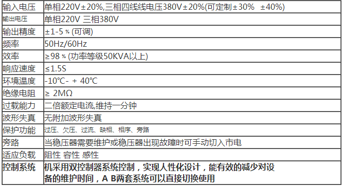 CSBW CDBW抗干擾凈化交流是我公司引進(jìn)吸收西歐先進(jìn)技術(shù),同時(shí)結(jié)合我國(guó)國(guó)情 ,為穩(wěn)定交流電壓而設(shè)計(jì)。當(dāng)外界的供電網(wǎng)絡(luò)電壓波動(dòng)或負(fù)載變化而造成電壓波動(dòng)時(shí),能自動(dòng)保持輸出電壓的穩(wěn)定。本系列產(chǎn)品與其它型式穩(wěn)壓器相比具有容量大、效率高、無波形畸變、電壓調(diào)節(jié)平穩(wěn)等優(yōu)點(diǎn),適用負(fù)載廣泛,能承受瞬時(shí)超載,可長(zhǎng)期連續(xù)工作,手動(dòng)/自動(dòng)隨意切換,設(shè)有過壓、過流、缺相、相序保護(hù)及機(jī)械故障自動(dòng)保護(hù),以及體積小、重量輕、使用安裝方便、運(yùn)行可靠等優(yōu)點(diǎn)。