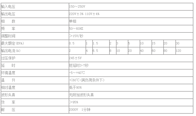 本穩(wěn)壓器體積小、效率高、波形失真小、調(diào)壓速度快、性能穩(wěn)定可靠、保護功能齊全,可長期連續(xù)工作,根據(jù)用戶需要,可設(shè)欠壓、延時等保護功能。是家用電器和其它用電設(shè)備最合適的穩(wěn)壓電源。
