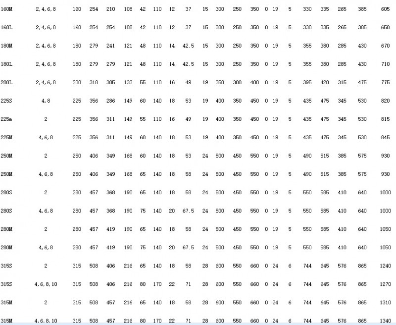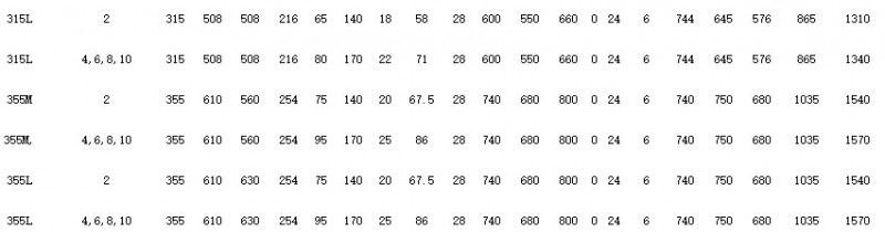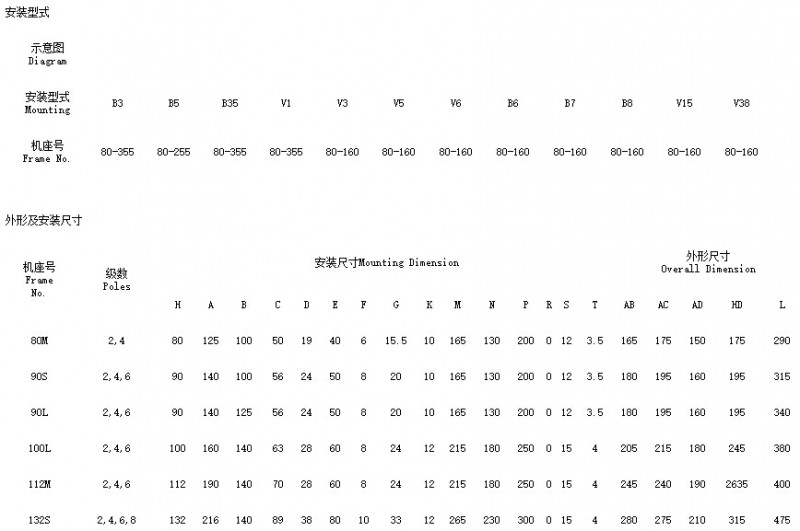 2)B5型機座無底腳,端蓋上無凸緣,無尺寸A、B、C、AB。