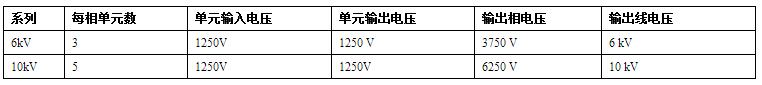 10kV系列:共15個(gè)功率單元組成,每5個(gè)單元構(gòu)成一相,3相Y接;
