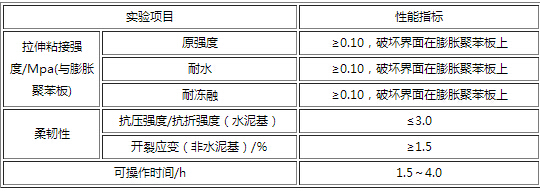 (抹面砂漿性能指標(biāo)依據(jù)《膨脹聚苯板薄抹灰外墻外保溫系統(tǒng)》JG149—2003標(biāo)準(zhǔn))