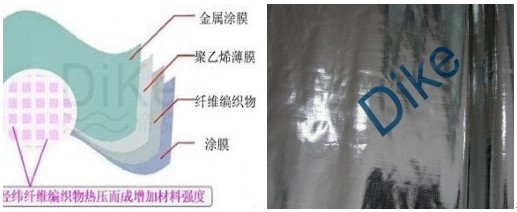 Dike•帝克TM隔汽膜由金屬涂膜+聚乙烯薄膜+經(jīng)緯編織物+塑膜通過熱熔膠層壓而成,隔汽膜具有不透汽性、防水、防潮等功能。