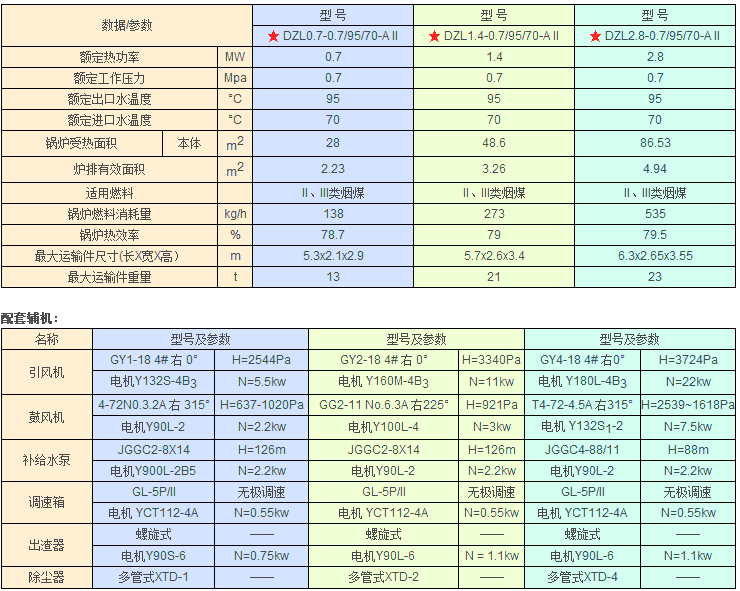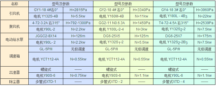★ 燃煤蒸汽鍋爐主要特性參數(shù)表: