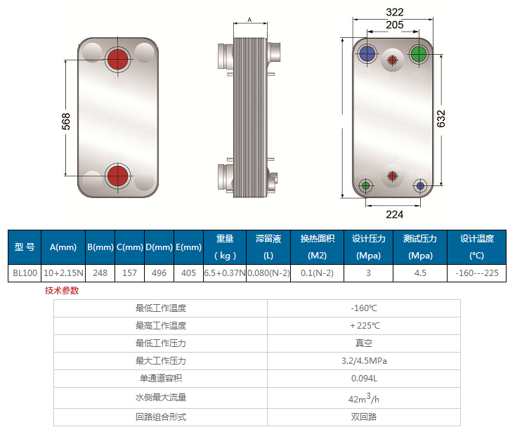 ·BL-210型釬焊板式換熱器為一款專為中央空調(diào)、工業(yè)冷水機(jī)組、大型熱泵系統(tǒng)設(shè)計(jì)開(kāi)發(fā)的釬焊板式換熱器,在錐壓縮機(jī)和雙壓縮機(jī)回路中使用R22制冷劑,其換熱量范圍在30 ~300KW 的范圍。
