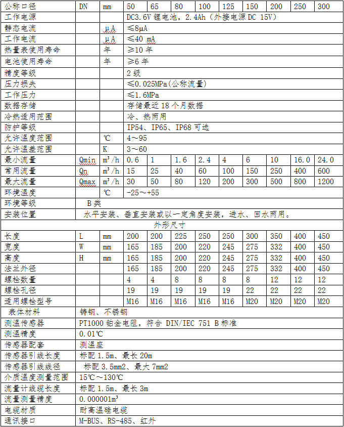 8、熱量表顯示功能:熱量表可顯示瞬時熱量、累積熱量、瞬時流量、累積流量、供回水溫度、供回水溫差和累積工作時間等。