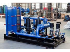 蒸汽或高溫水在溫控閥控制下,按供熱系統(tǒng)所需流量送入換熱器,換熱器以間接換熱方式將熱用戶的采暖(空調(diào))回水加熱;被加熱水首先流經(jīng)不銹鋼芯除污器,再經(jīng)循環(huán)泵進(jìn)入換熱器被加熱后供用戶使用,周而復(fù)始。一次熱媒在換熱器換熱后又回至一次供熱管網(wǎng)。系統(tǒng)的水量損失由補(bǔ)水泵按設(shè)定的壓力自動(dòng)補(bǔ)充,確保系統(tǒng)壓力穩(wěn)定、正常運(yùn)行。