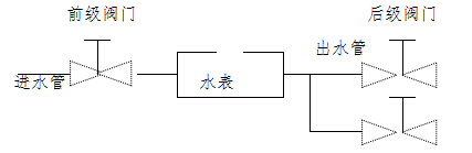 在自來水入戶管道處安裝一個超聲波水表(如圖),表前和表后分別安裝一個鎖閉閥。