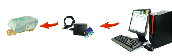 IC卡超聲波水表串接在自來(lái)水管上,在測(cè)量流量數(shù)據(jù)的同時(shí),表內(nèi)的測(cè)量和計(jì)算機(jī)構(gòu)自動(dòng)計(jì)算自來(lái)水使用量(m3或“元”)和剩余量(m3或“元”),當(dāng)剩余量為0時(shí),電控閥門(mén)將自動(dòng)關(guān)閥停止供水,用戶需要持IC到售水機(jī)構(gòu)繳費(fèi)購(gòu)水,寫(xiě)入購(gòu)水信息的IC卡將新購(gòu)水量(或水費(fèi))輸入表內(nèi)后,表內(nèi)閥門(mén)將自動(dòng)開(kāi)啟正常通水。