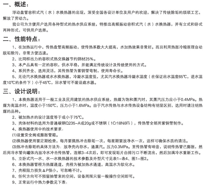 浮動盤管容積式汽(水)水換熱器的出現(xiàn),深受全國各設(shè)計(jì)單位及用戶的歡迎,解決的傳統(tǒng)除垢的煩瑣工藝,解放了勞動力。