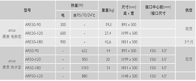 森德 arcus 雅貴衛(wèi)浴散熱器是由兩個(gè)垂直分水管和一組水平拱形圓管構(gòu)成。