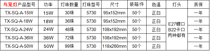 LED塑料球泡燈技術(shù)參數(shù)