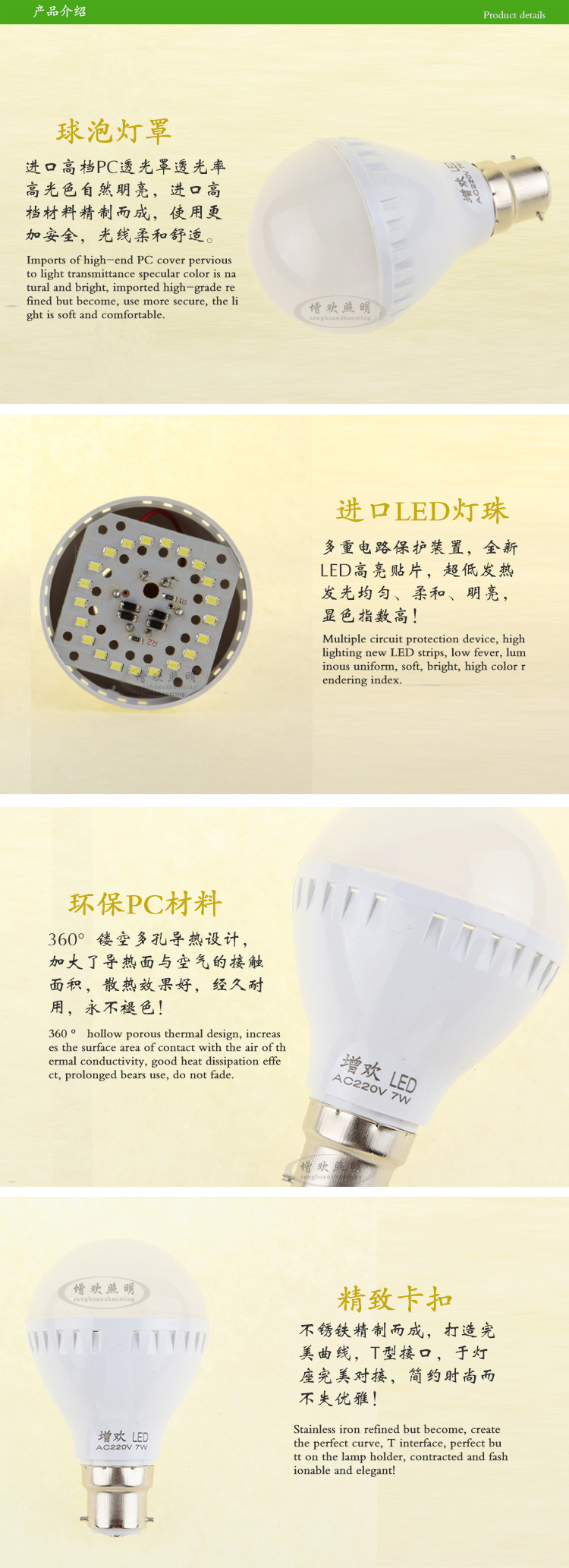 7W卡口LED燈泡LED塑料球泡燈LED節(jié)能燈