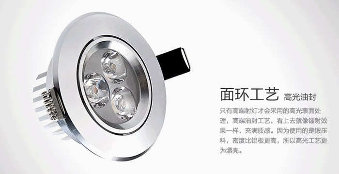 2、面環(huán)工藝,只有高端筒燈才會(huì)采用的高光表面處理,高端油封工藝,看上去就像鐳射效果一樣,充滿質(zhì)感,因?yàn)槭褂玫氖清憠毫希芏缺蠕X板更高,所以高光工藝更為漂亮。