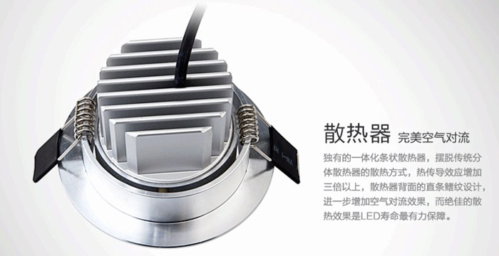 4、散熱器,獨(dú)有的一體化條狀散熱器,擺脫傳統(tǒng)分體散熱器的散熱方式,熱傳導(dǎo)效應(yīng)增加三倍以上,散熱器背面的直條鰭紋設(shè)計(jì),進(jìn)一步增加空氣對(duì)流效果,而絕佳的散熱效果是LED壽命最有力保障。