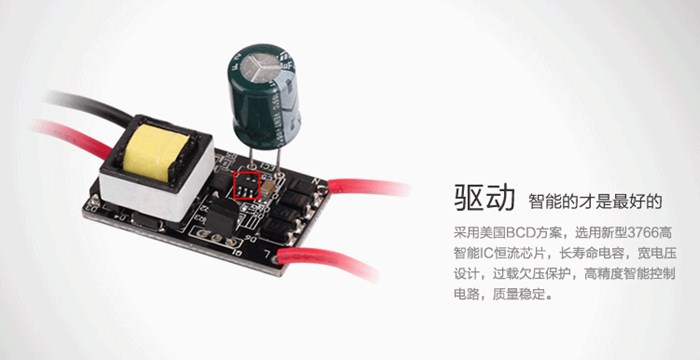 5、采用美國(guó)BCD方案,選用新型3766高智能IC恒流芯片,長(zhǎng)壽命電容,寬電壓設(shè)計(jì),過(guò)載欠壓保護(hù),高精度智能控制電路,質(zhì)量穩(wěn)定。
