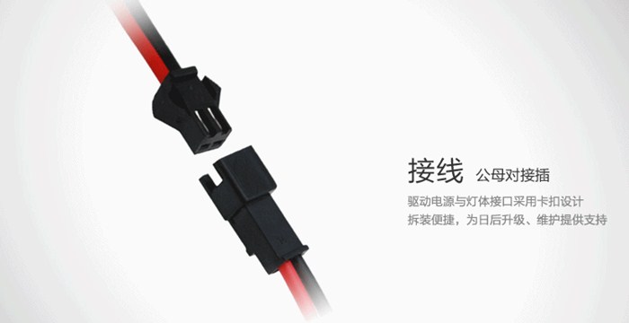 6、驅(qū)動(dòng)電源與燈體接口采用卡扣設(shè)計(jì),拆裝便捷,為日后升級(jí),維護(hù)提供支持。