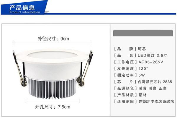 2.5寸5W豪華款LED筒燈 天花板吊頂LED燈