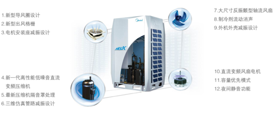 利用CFD、FEM等先進(jìn)技術(shù)對空調(diào)系統(tǒng)的元器件振動(dòng)源進(jìn)行優(yōu)化,實(shí)現(xiàn)靜音運(yùn)轉(zhuǎn),夜間運(yùn)行模式把噪音降低到最低。
