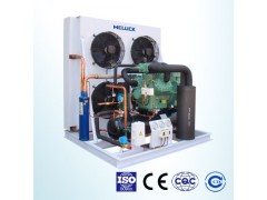 半封閉雙級(jí)壓縮冷凝機(jī)組采用比澤爾雙級(jí)壓縮機(jī),功率從5HP—30HP,分風(fēng)冷和水冷兩種型式,廣泛應(yīng)用于速凍設(shè)備中。半封閉雙級(jí)壓縮冷凝機(jī)組具有較低的蒸發(fā)溫度,當(dāng)使用R22時(shí),最低蒸發(fā)溫度可達(dá)-50℃,當(dāng)使用R404A時(shí),最低蒸發(fā)溫度可達(dá)-65℃,可應(yīng)用于低溫箱、速凍設(shè)備等裝置中。