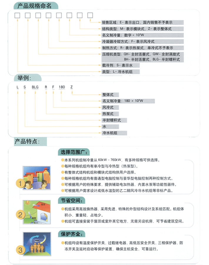 保護齊全:設有溫度保護開關,過載繼電器,高低壓安全開關,三相保護器,防凍開關及延時啟動等保護裝置,確保主機安全,可靠運行;