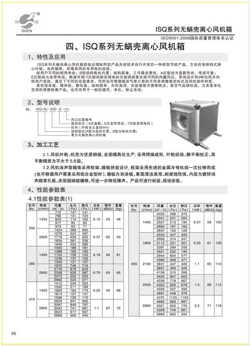 ISQ系列離心管道式 無蝸殼離心風(fēng)機(jī)箱