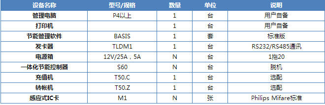 一體化計時型節(jié)能控制系統(tǒng)基本配置: