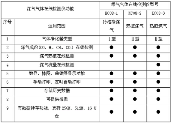 一、煤氣氣體在線檢測(cè)儀技術(shù)特性