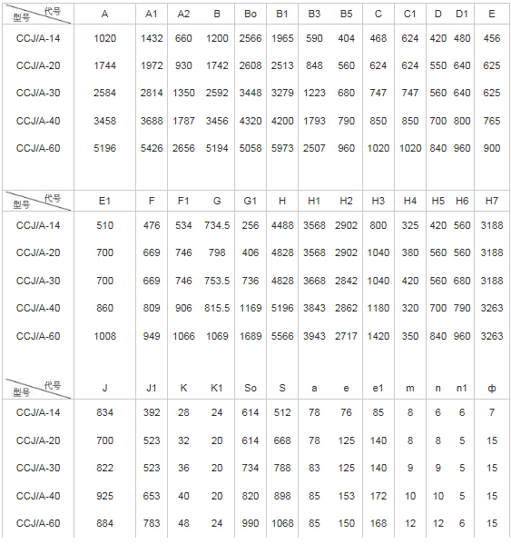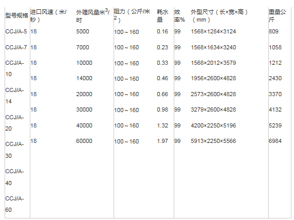 此類型除塵機(jī)組有幾種不同型式的排泥漿方法,本型號(hào)號(hào)為錐形漏斗排泥漿的沖激式除塵機(jī)組,定型為CCJ/A(C-沖激式;C-除塵;J-機(jī)組;A-錐形漏斗排泥漿)。按處理風(fēng)量的能力分八種規(guī)格。