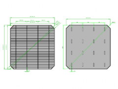 Front side(-): Silicon nitride anti-reflection coating Four 1.0±0.05mm wide busbars with distance 39mm