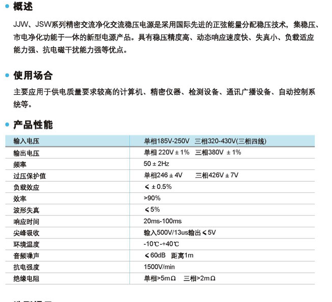 百曉電器JJW10KVA精密交流凈化穩(wěn)壓電源