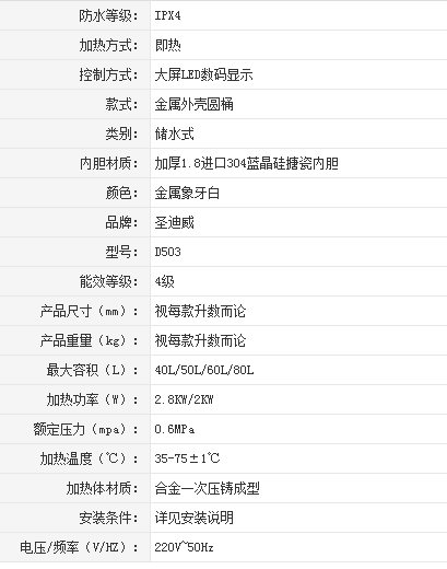 圣迪威儲水式電熱水器