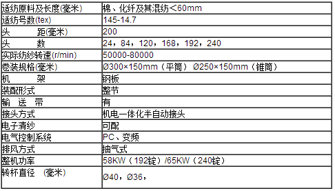 1.紡紗器屬抽氣式結(jié)構(gòu),實際紡紗速度5-8萬轉(zhuǎn)/分鐘。