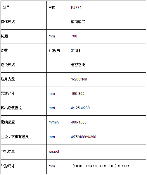 K2771適用于棉,毛,化纖(1-200Nm),通過(guò)此機(jī)可生產(chǎn)精密卷繞的圓柱形卷裝, 適用于工業(yè)絲的精密倒筒。