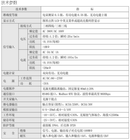 • 測(cè)量三相電壓、電流、功率、功率因數(shù)、頻率、需量