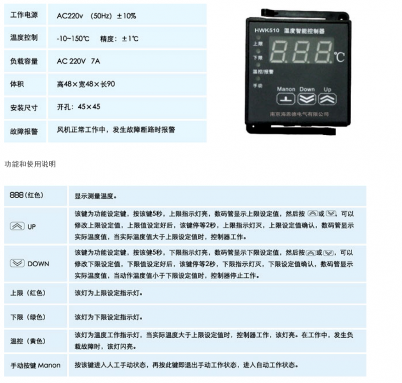 江蘇 海恩德電氣 HWK510 溫濕度控制器
