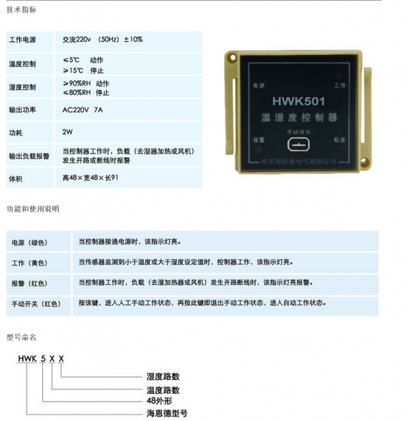 江蘇 海恩德電氣 HWK501 溫濕度控制器
