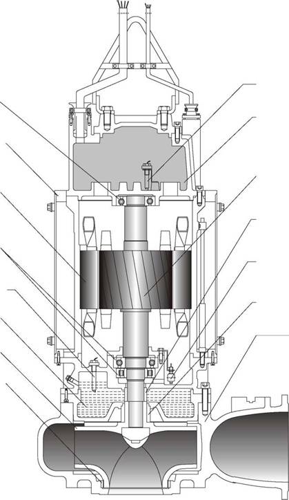 油可潤滑并冷卻機(jī)械密封,并能阻止液體滲透至電 機(jī)的附加安全功能。內(nèi)留的一定量空氣可降低油室內(nèi)壓 力的積聚升高。