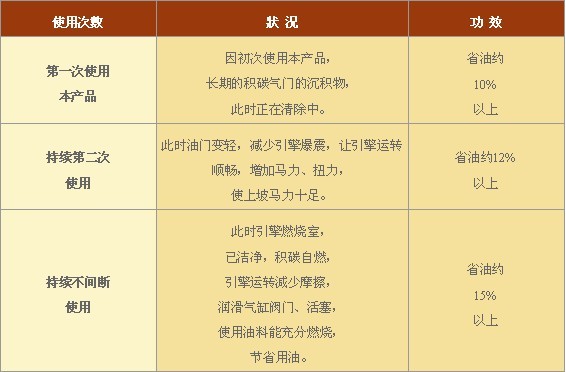 *因長(zhǎng)期使用,可保證引擎,更可以節(jié)省無法預(yù)估的引擎維修的費(fèi)用。省油效果,依各車況及行車習(xí)慣而有所差異。