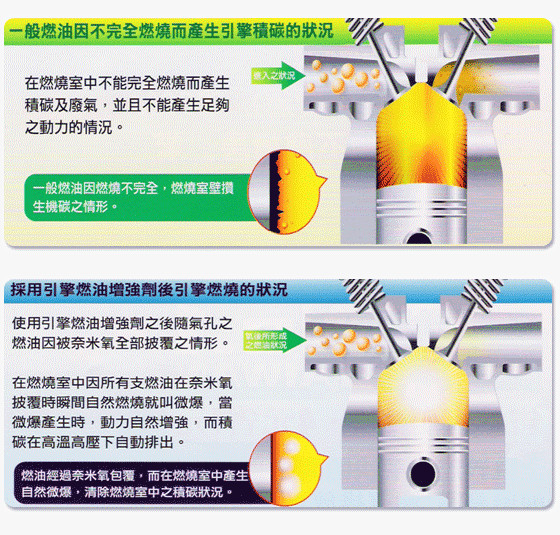 MAGICPOWER(燃油增強(qiáng)劑) 強(qiáng)效燃油增強(qiáng)劑主要是由十六環(huán)氧基所組成,我們都知道氧能助燃,在引擎燃燒中的燃油,被奈米十六氧分子重重吸附時(shí)而產(chǎn)生高能量的燃燒就叫微爆,當(dāng)微爆產(chǎn)生 時(shí),就不需要太多的燃油供給而達(dá)到最高引擎的動(dòng)力,又因?yàn)槲⒈a(chǎn)生的同時(shí),燃燒不完全的廢氣,也同時(shí)在瞬間高溫中自燃,促使積碳也同時(shí)在高溫及高壓下由廢 氣的出氣孔排出,此乃說明了十六環(huán)氧的助燃及自燃的原理。