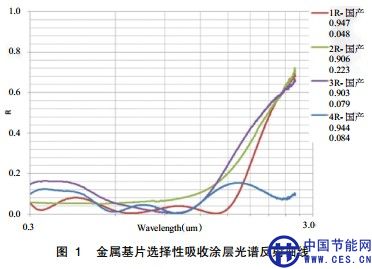 1 平板太陽能集熱器板芯涂層光學(xué)性能用于平板太陽能集熱器板芯的太陽選擇性吸收涂層,主要的光學(xué)性能參數(shù)是太陽吸收比和紅外熱輻射比(法向發(fā)射比)。
