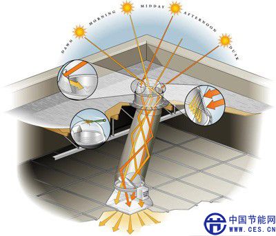 管道日光照明系統(tǒng)是一種建筑節(jié)能減排的新技術(shù)之一,能有效降低建筑物照明能耗。日光照明系統(tǒng)是將陽(yáng)光通過(guò)前端捕捉,然后通過(guò)反射管道向下改道,透過(guò)安裝于天花板上不同的反射面(漫射器),將自然光均勻分布到建筑內(nèi)部的區(qū)域,同時(shí)通過(guò)智能控制,可以與日常照明系統(tǒng)結(jié)合使用,在晚上或陰天仍然由日常照明系統(tǒng)提供光源。