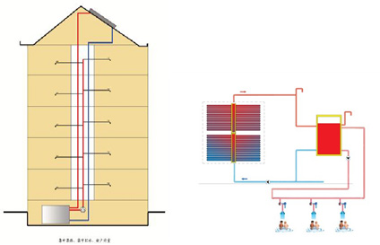 | 非承壓型集中集熱—分戶水箱 方案特點: ★系統采用集中集熱,間接換熱,分戶儲熱 ★集熱系統為開式,集熱器集中放置,需有足夠的安裝面積 ★儲水箱每戶一個,內置電加熱,確保陰雨天的正常使用 ★儲水箱可以根據需要放置于室內,利于水箱的保溫 ★水箱承壓運行,有效保證冷熱水的水壓一致,混水均勻,提高了熱水使用的舒適度 ★采用間接換熱,有效保證熱水的衛(wèi)生潔凈 ★解決了屋面集熱器安裝面積不足造成的難題—高層建筑不能使用太陽能 ★設有自動回水功能,保證用水時溫度,減少了冷水的流失 ★每戶一套供水系統,用水分戶計量,住戶可隨住隨用,便于物業(yè)管理 系統特點: ★系統初投資較分戶承壓型低 ★系統運行較穩(wěn)定,運行成本較低 ★集熱系統為開式,便于安裝、維護 ★配品、配件較為普及,便于維護 ★我們的設計方案 |