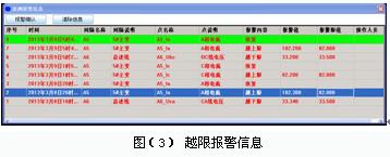 遙測(cè)報(bào)警功能,主要完成對(duì)直變和主變負(fù)載越限彈出報(bào)警界面指示具體的報(bào)警位置并聲音報(bào)警,提醒值班人員及時(shí)處理。負(fù)載越限值在相應(yīng)權(quán)限下可自由設(shè)置。具備歷史查詢功能,見圖(3)。