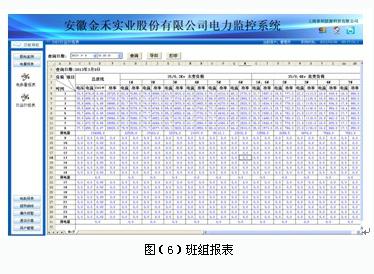 班組考核報(bào)表,可實(shí)時(shí)每個(gè)班組工作時(shí)間段的電參量及能耗值,如圖(7)所示。